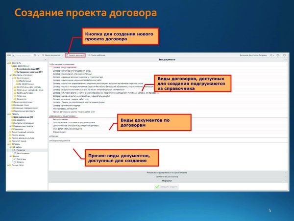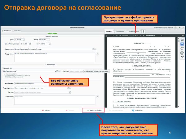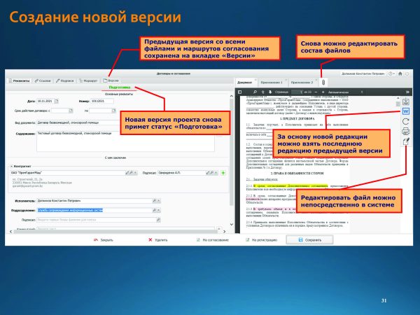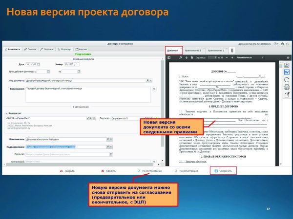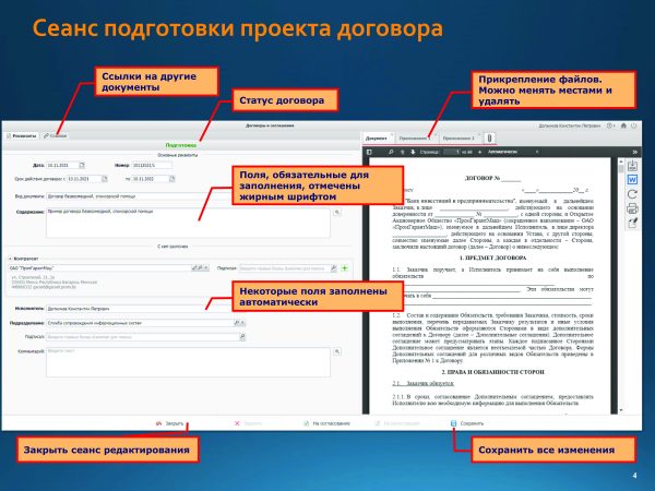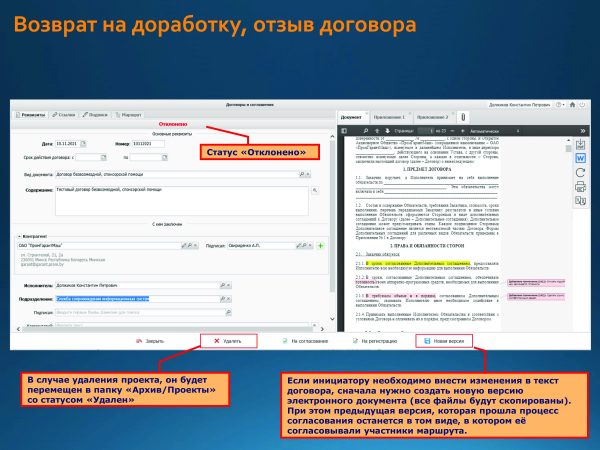 Home Знакомство с системой Подготовка и согласование проектов договоров